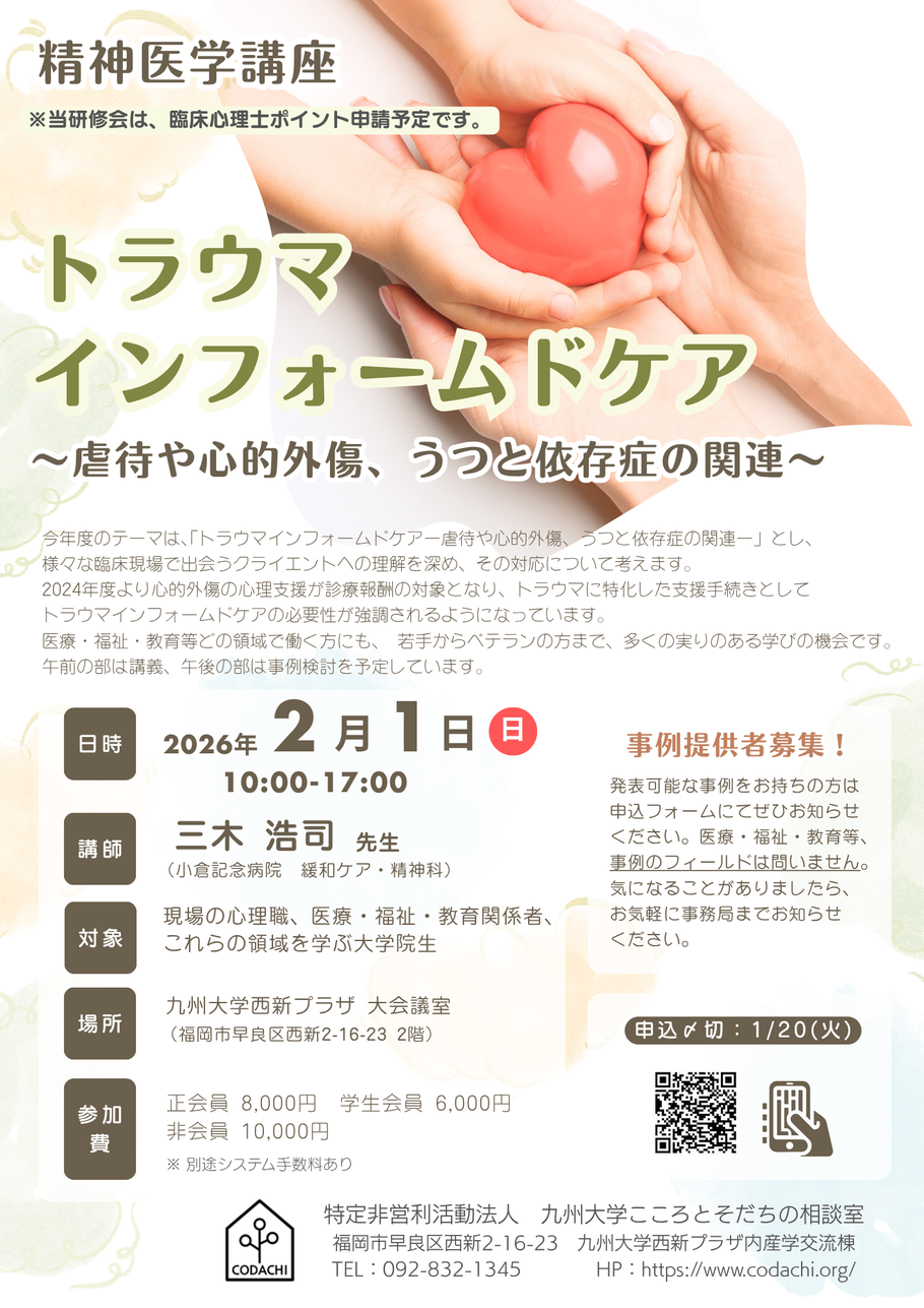 ※本研修会は臨床心理士ポイント申請予定の研修会です。